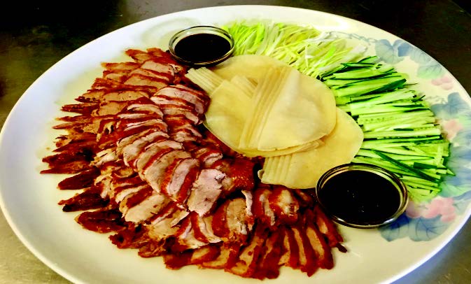 24db palacsintatészta, pekingi kacsa szósz, póréhagyma, uborka csíkok